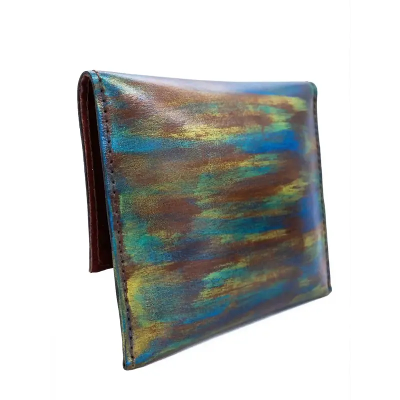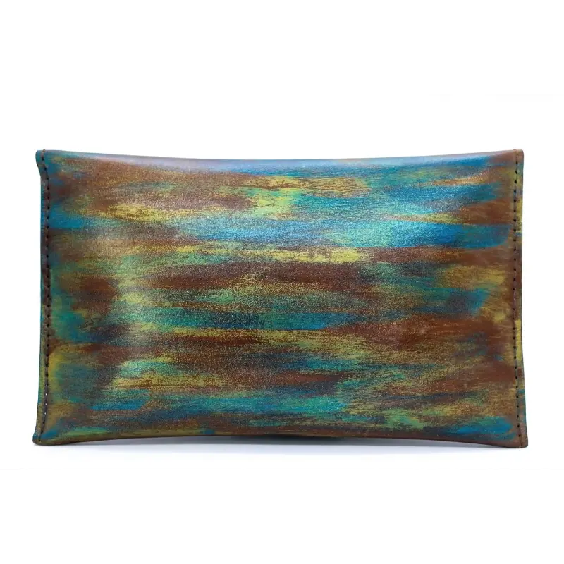 تم تصنيع الشنطة باستخدام جلد طبيعى بقري خام مصبوغ بأجود انواع الصبغات  ثم ملون بألوان مبتكرة اما تبرز شكل العين بالالوان الازرق والذهبى(الالوان المصرية القديمة) او تلوين الشنطة بالكامل بألوان متداخلة يتعطى لمسة حديثة وكانها لوحة فنية بأجود أنواع الالوان الخاصة بالجلد.